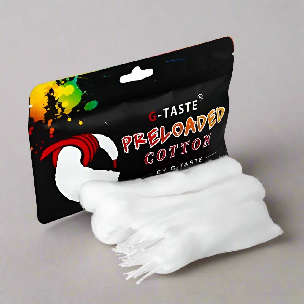 G-taste preloaded cotton is to provide the most convenient, cleanest, and easy to wick. We select premium organic cotton from Japan, free of impurities, natural oils, and pesticides. Packaged in a resealable travel size package, with 20pcs Preloaded cotton and 4pcs Strip cotton. By pre-loaded design, Coil Building DIY Lovers will have different Experiences. If you re-wick often or are in a hurry, G-taste pre-loaded cotton is the way to go.