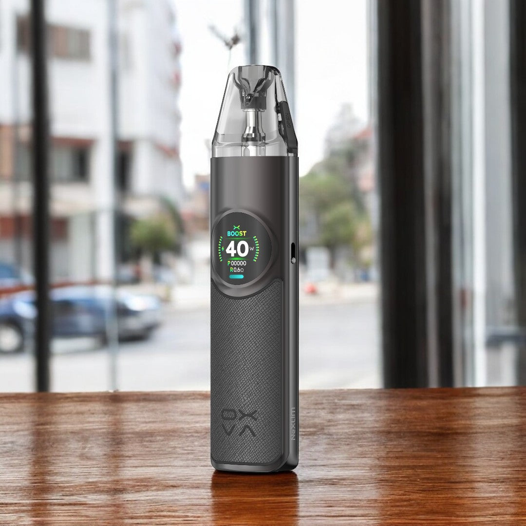 The Oxva NeXlim pod kit is a sleek vape that’s perfect if you’re after something compact yet powerful. Its ergonomic build houses a large, rechargeable 1500mAh battery which will last most vapers all day and it only takes 45 minutes to recharge. With a max 40W output and range of compatible pods, this kit can support MTL (Mouth To Lung) and RDTL (Restricted Direct To Lung) vape styles, so it’s ideal if you’re looking for a device with more customization.