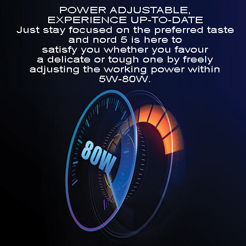 You can adjust the power by clicking the buttons below the display screen. Nord 5 can satisfy you whether you favor a delicate or tough one by freely adjusting the working power within 5W-80W.