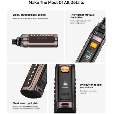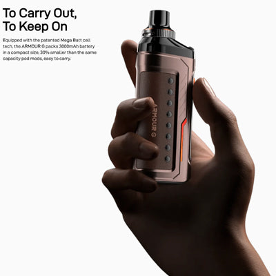 Crafted from heavy-duty materials, the Armour G is built to endure, while the 2ml Armour G Series pod makes refilling straightforward and mess-free.