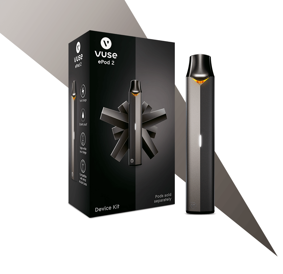 The Vuse ePod features a sleek design. Experience a fast charge*, while you vape! The new splash-proof design and improved battery indicator also makes sure you don't miss a moment.