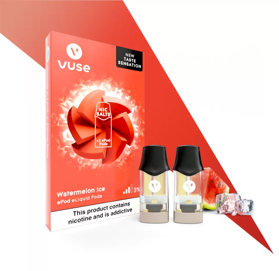 Watermelon Ice: A cooling blend of ripe and juicy watermelon flavor with an icy cool twist. (Strength 3%)